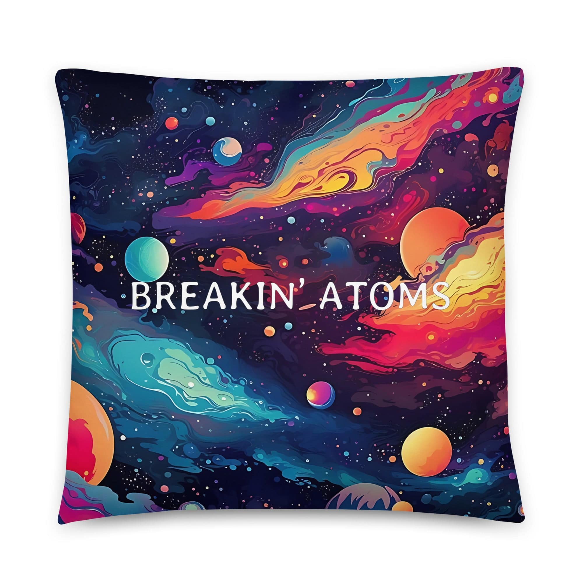 The "Galactic Dreams Pillow" from Breakin' Atoms captures the infinite expanse of the universe with its detailed imagery of planets and cosmic vistas. Designed to represent the boundless possibilities that come from breaking atoms, this pillow serves as a subtle yet powerful statement piece in any room. Material: 100% polyester...