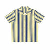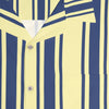 The Golden Hour Stripes shirt is a reflection of that fleeting moment when day meets night, captured in a pattern of vertical lines. Deep navy stripes stand in stark contrast to the warm, golden yellow background, much like the sun's final rays against the darkening sky. The arrangement of the stripes is methodical, guiding the eye with precision and grace.