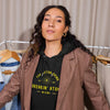 Heavyweight premium cotton construction (6oz+ for tees, 12–16oz for fleece). Double-stitched seams throughout. Pre-shrunk and garment-dyed for lasting color and shape retention. Built to carry weight — yours and the world's.