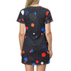 Breakin' Atoms All-Over-Print Long Tee Dress – where easy-going comfort meets edgy style. Designed for those who love to blend effortless chic with a touch of playful boldness, this dress is a wardrobe staple that truly stands out.