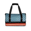 The "Liberty Star" duffel bag features a striking star pattern set against a vintage blue backdrop, highlighted by bold red and white stripes. This design evokes the timeless symbols of the American flag, representing the unity and enduring spirit that characterize the nation. The Breakin' Atoms logo is subtly integrated into the design, adding a touch of brand identity without overwhelming the aesthetic.