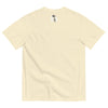 Heavyweight premium cotton construction (6oz+ for tees, 12–16oz for fleece). Double-stitched seams throughout. Pre-shrunk and garment-dyed for lasting color and shape retention. Built to carry weight — yours and the world's.