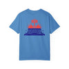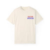 Introducing the Haitian American Tee from the Breakin' Atoms 1804 Collection. This garment-dyed t-shirt by Comfort Colors is a timeless classic that combines style, comfort, and cultural pride. The front of the shirt features the bold text "Haitian American" in vibrant red and purple, while the back showcases the Haitian coat of arms in striking red and blue, symbolizing the rich heritage and resilience of Haiti.